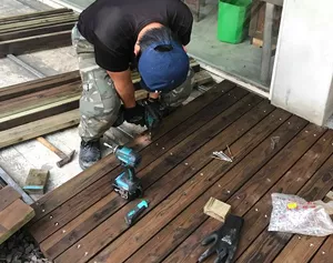 與木製研利用國產材-柳杉施作戶外木地板並塗裝木蠟油