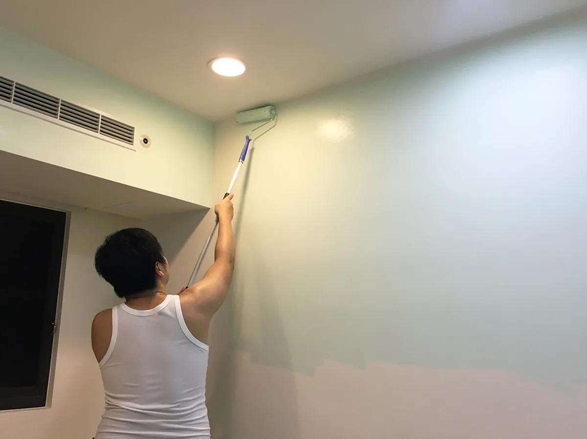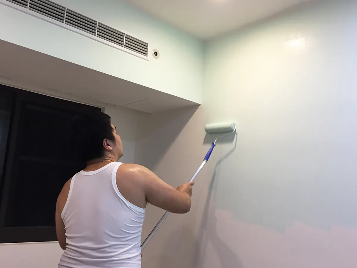 大面積可選用滾塗、刷塗,滾塗較為省力。